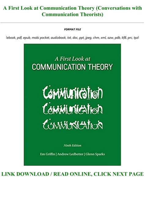 Read Online A First Look at Communication Theory Conversations with Communication Theorists PDF online is a convenient and frugal way to read A First Look at Communication Theory Conversations with Communication Theorists you love right from the comfort of your own home. Yes, there sites where you can get PDF "for free" but the ones listed below are clean from viruses and completely legal to use.